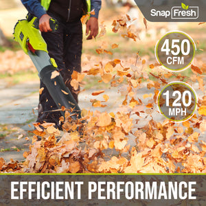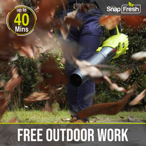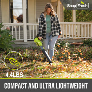 As part of the 20V platform, this leaf blower shares 4.0 Ah batteries with other SnapFresh 20V products.