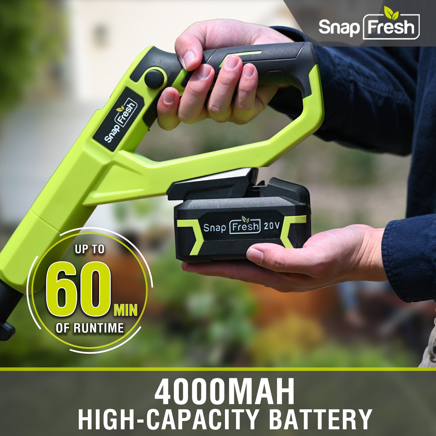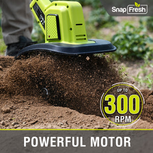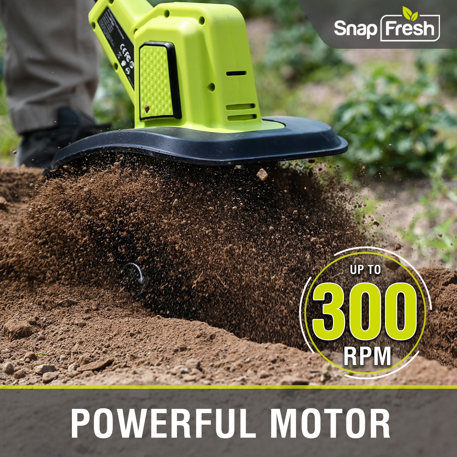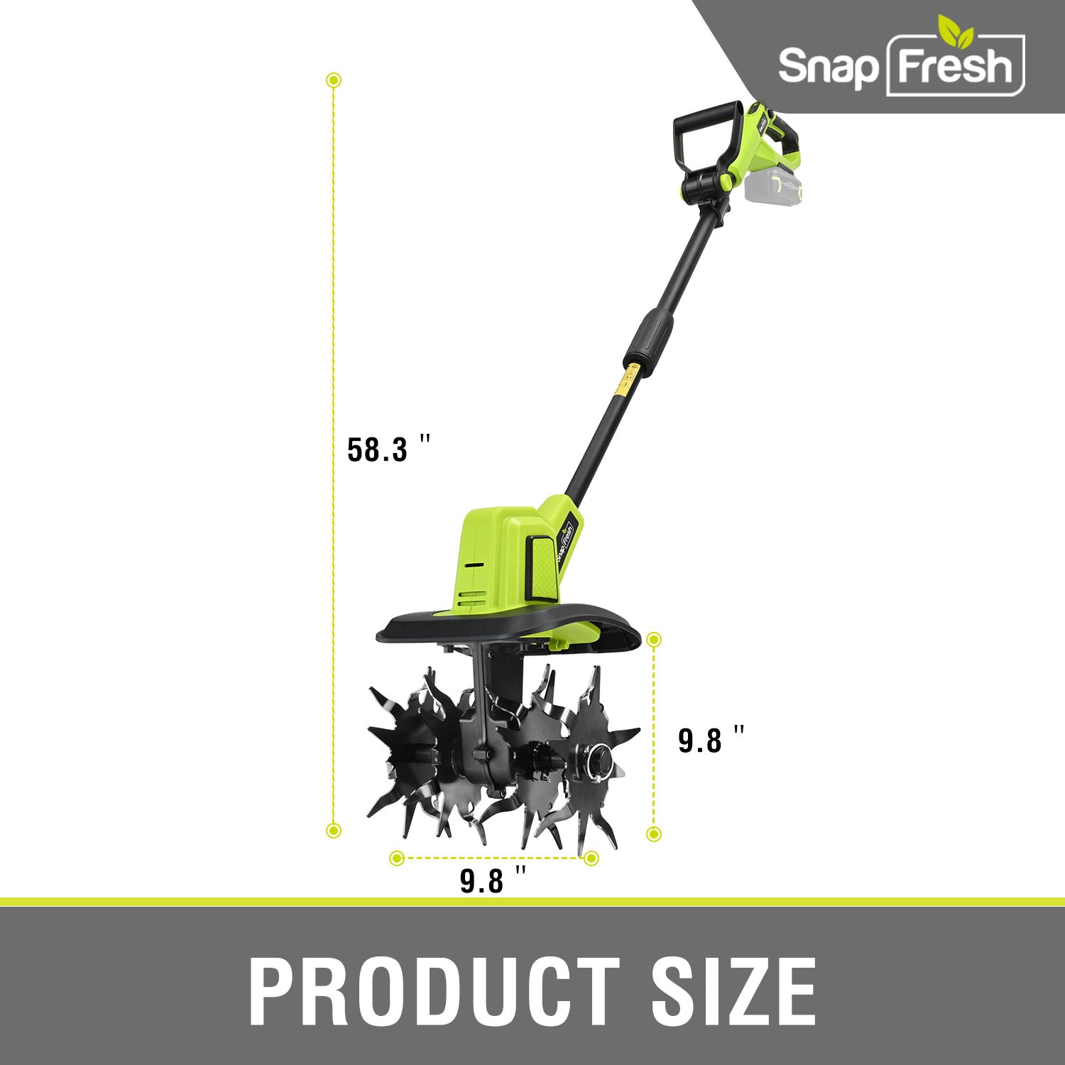 - Efficient Tiller: The SnapFresh tiller comes equipped with 4 steel tines, offering a 9-inch tilling width and a 6.6-inch tilling depth. You can also choose to use 2 inner cultivator tines or 2 outer cultivator tines for more precise tilling.