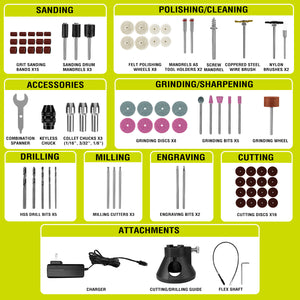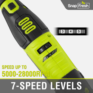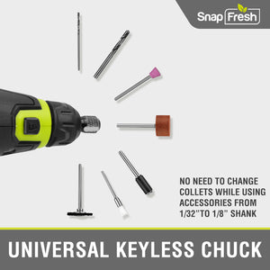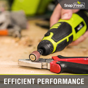 This SnapFresh cordless rotary tool kit is perfect for DIY crafts and small family jobs, cutting, wood carving, engraving, polishing, and detail sanding.