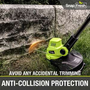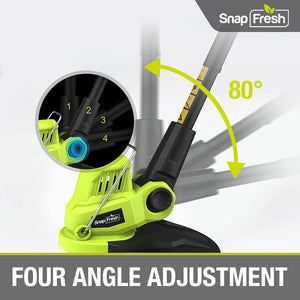 This SnapFresh string trimmer is equipped with auto spool feeding technology for hassle-free yard maintenance. The feature ensures continuous trimming without the need for manual adjustments, allowing you to focus on achieving a healthy and tidy lawn effortlessly. With its lightweight design and 12-inch cutting swath, this trimmer offers convenience and efficiency, making it the ideal choice for all your landscaping needs. The cutting head can switch between edging and trimming modes. And the four-position cutting head facilitates tilting to reach various parts of the lawn and tackle hard-to-reach corners effortlessly.Moreover,the adjustable handle enables the ease to hold and control. The spool line replacements are available.