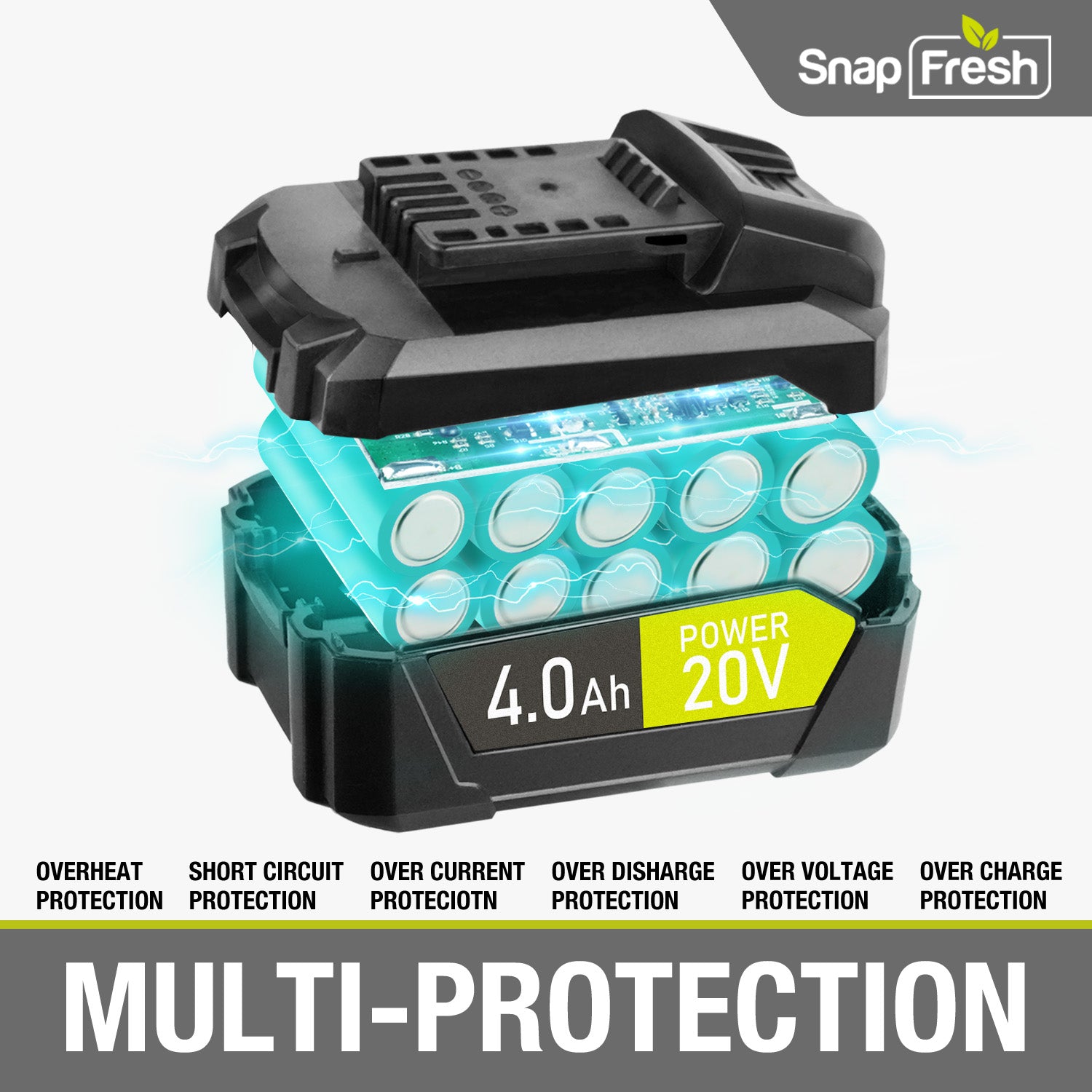 The fuel gauge lets you know the battery status before work begins. With built-in over-charge/discharge protection, short circuit protection, and overheat protection, you can confidently use it.