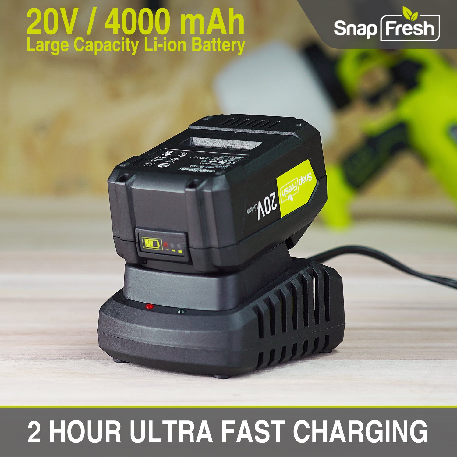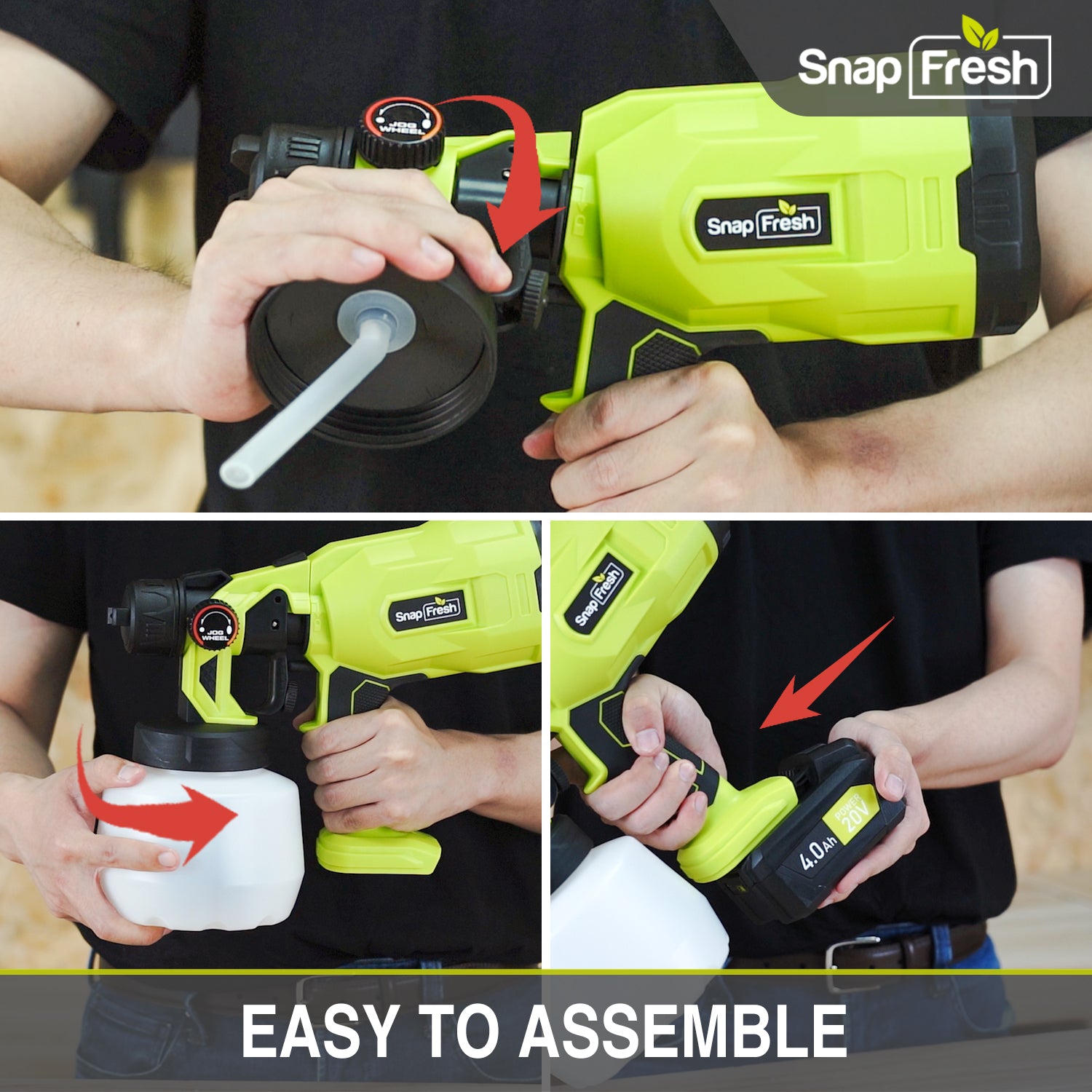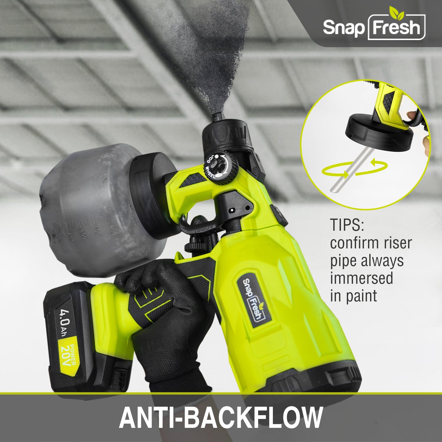 As part of the 20V platform, this paint sprayer shares 4.0 Ah batteries with other SnapFresh 20V products.